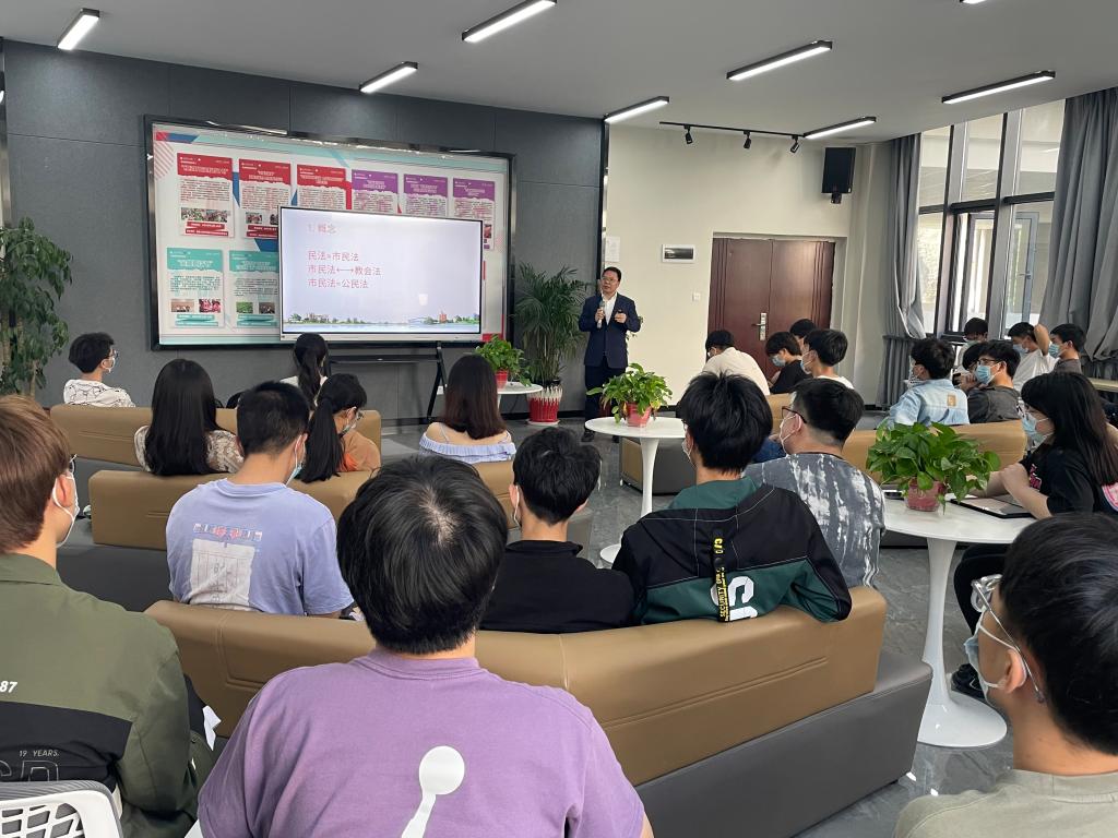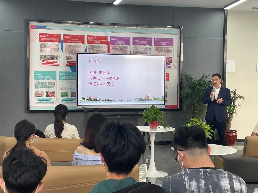 4月20日下午,南湖书院名誉院长李大雪教授在南湖书院中德创意工坊,和同学们一起畅聊“德国法律二三事”。带领同学们一起回顾了同学们被称为“欧洲民法双璧”、采用五编制的模式的《德国民法典》的编写历程及其所处时代的政治经济背景。以“法律有改造社会的功效”主题分享为切口,李大雪教授通过与同学们进行面对面深入交流互动,帮助同学们学习、了解国际文化,不断拓宽国际化视野、丰富知识储备,持续营造南湖书院国际文化氛围,培养具有全球视野的人才。