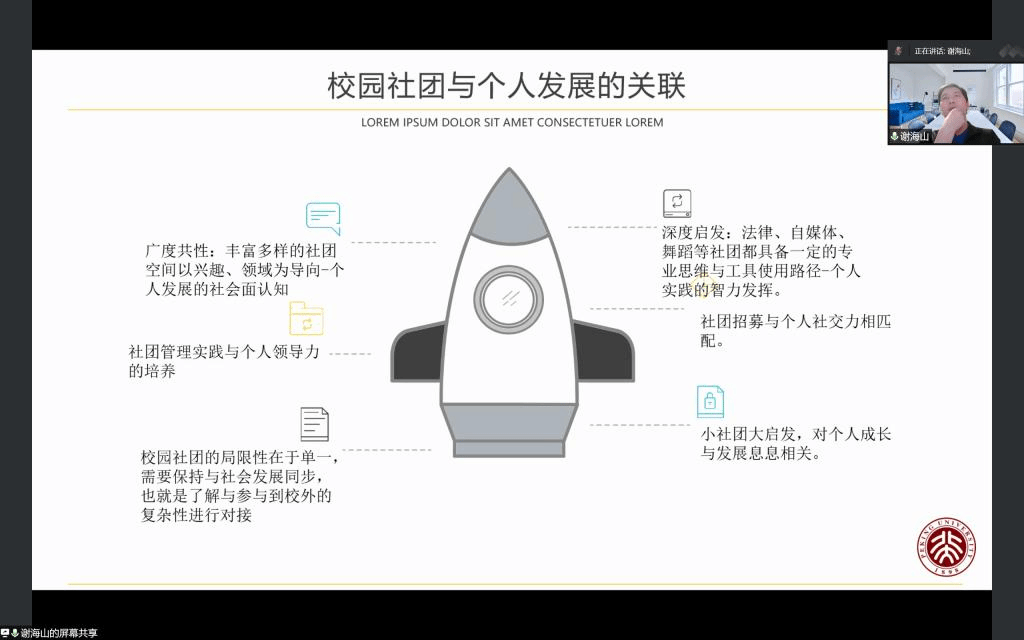 4月1日下午4点北山书院名誉院长王于飞教授以线上授课的形式进行了“大学生人文素质培养”为主题的精品授课,活动参与学生达到176人。本次活动通过人文与素质交流加强大学生的思想道德观,短短的80分钟,讨论高潮迭起,亦庄亦谐,舒畅无比。在活动中同学们进一步感受到人文素质教育的重要性,院长也将锻造乐学勤学的精神传播到此次授课的学生身上。