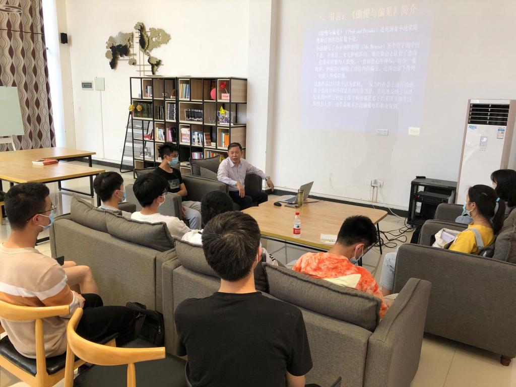 英语名著阅读是培养学生英语学科核心素养的有效途径之一。2022年4月21日下午,行者公园书院群名誉院长精品课第2讲:读名著,学英语—以《傲慢与偏见》为例在梅若书院207会议室举行。天渠书院名誉院长刘承宇教授通过原汁原味的语言材料和书中“目标语言”内容,带领学生理解和欣赏文学作品。从赏主题、赏人物、赏情节、学语言、拓视野、拓情操六个方面提高学生英语学习能力。