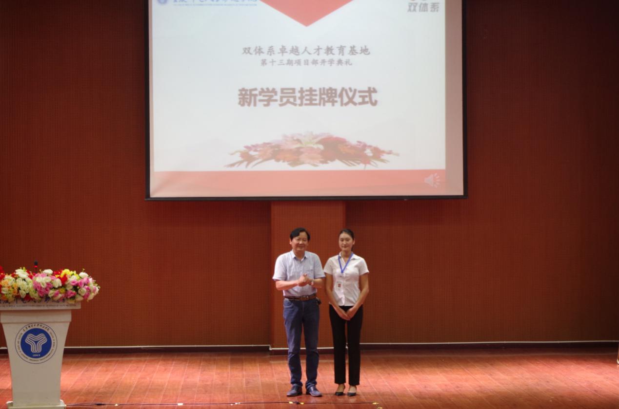 接着,重庆邮电大学移通学院院长张德民教授为新学员们授牌。鞠躬,握手,授牌,每一个动作都体现出新学员们对这个神圣时刻的向往,授牌不仅是一份脱颖而出的荣誉,更是一种改变自己未来的决心。