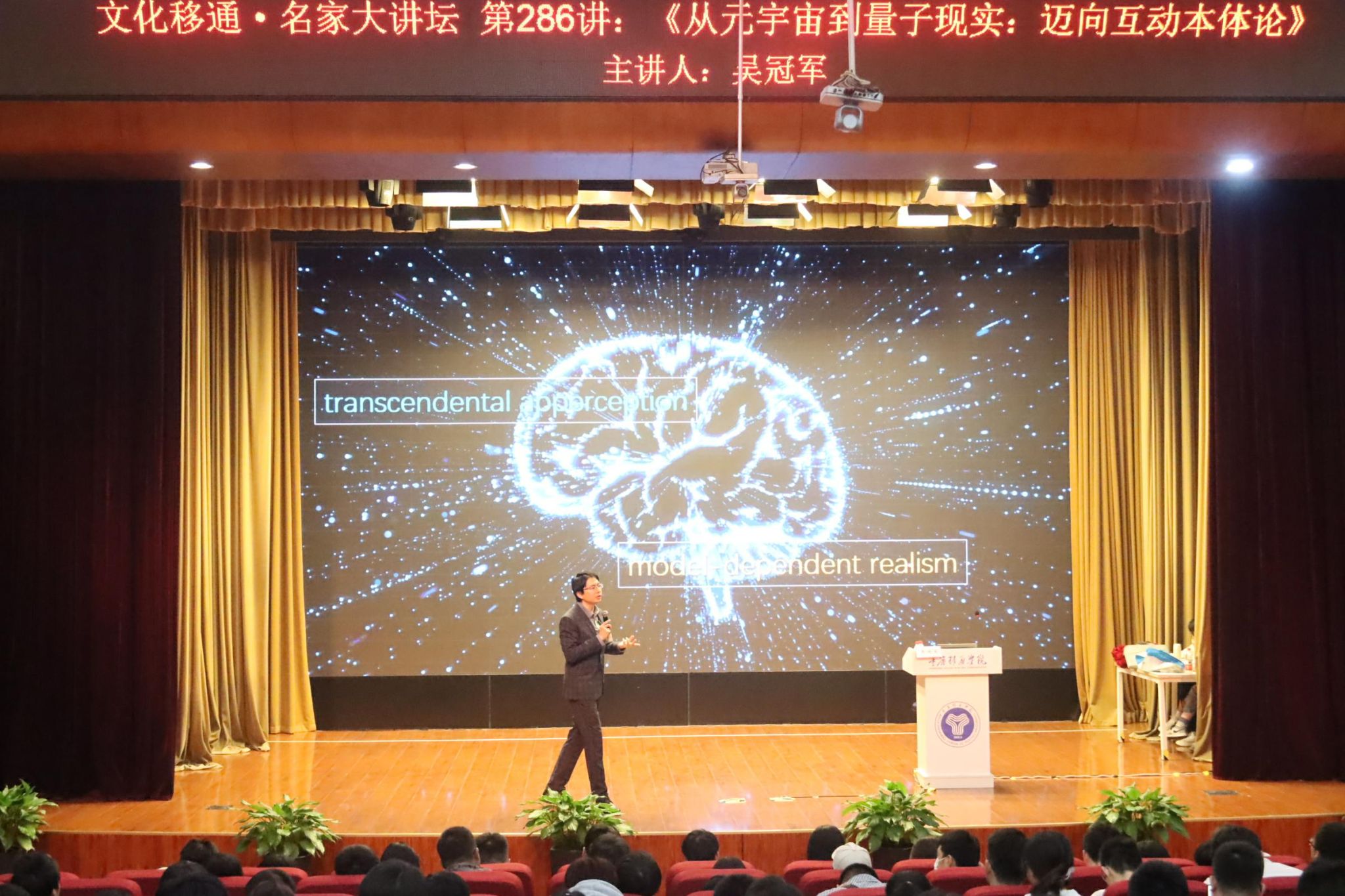 随着时代的发展,人类面临着很多新问题的出现,在瞬息万变的世界背景下,人工智能程序新兴技术Mid journey应运而生,这个技术给世界带来了不一样的可能性,那这种可能性是什么呢?4月27号晚上七点,在下里巴人剧场,吴冠军教授为我们带来了《从元宇宙到量子现实:互动本体论》的讲座,让同学们深入了解互动本体论和元宇宙的奇妙无穷。