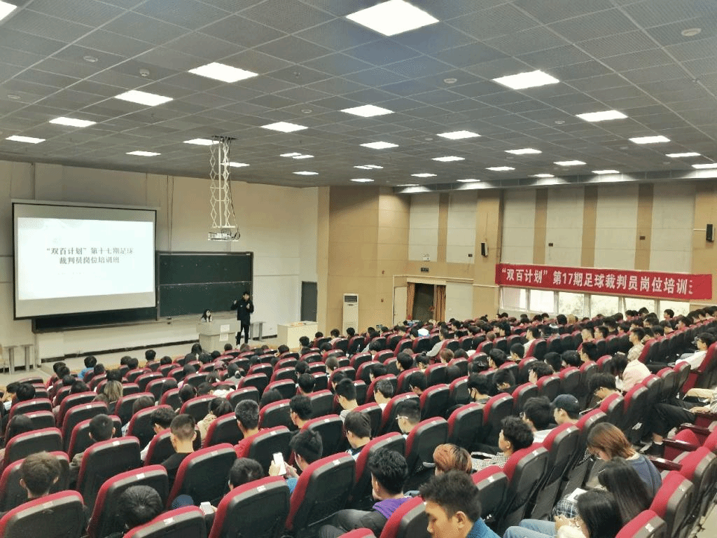 2020年11月1日及8日,由竞技体育中心主办、学生体育联合会筹办的第十七期足球裁判员岗位培训班在我校顺利展开。本次培训由李明磊老师主讲,课程分为两个板块——理论教学与实践教学。