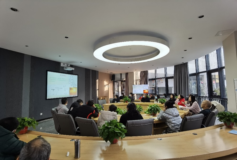 江莎教授从生活中的发光讲起,引入“稀土材料”,介绍了其在发光、永磁体、电池、储氢合金等方面的应用。之后,着眼于稀土材料在发光领域的应用和发展,江莎教授介绍了稀土发光材料的发光机理及其在照明显示、生物荧光标记和温度传感中的应用。最后,还对稀土材料的发展趋势进行了展望。此次学术讲座不仅让部门教师开拓了视野,而且对教师今后的教学工作起到积极作用。随后,江莎教授与老师们进行了问题互动的探讨,有的老师反应我们没有实验条件,江莎教授立即诚邀我们对这个领域感兴趣或正在从事这个领域研究的老师去重庆邮电大学完成实验项目。