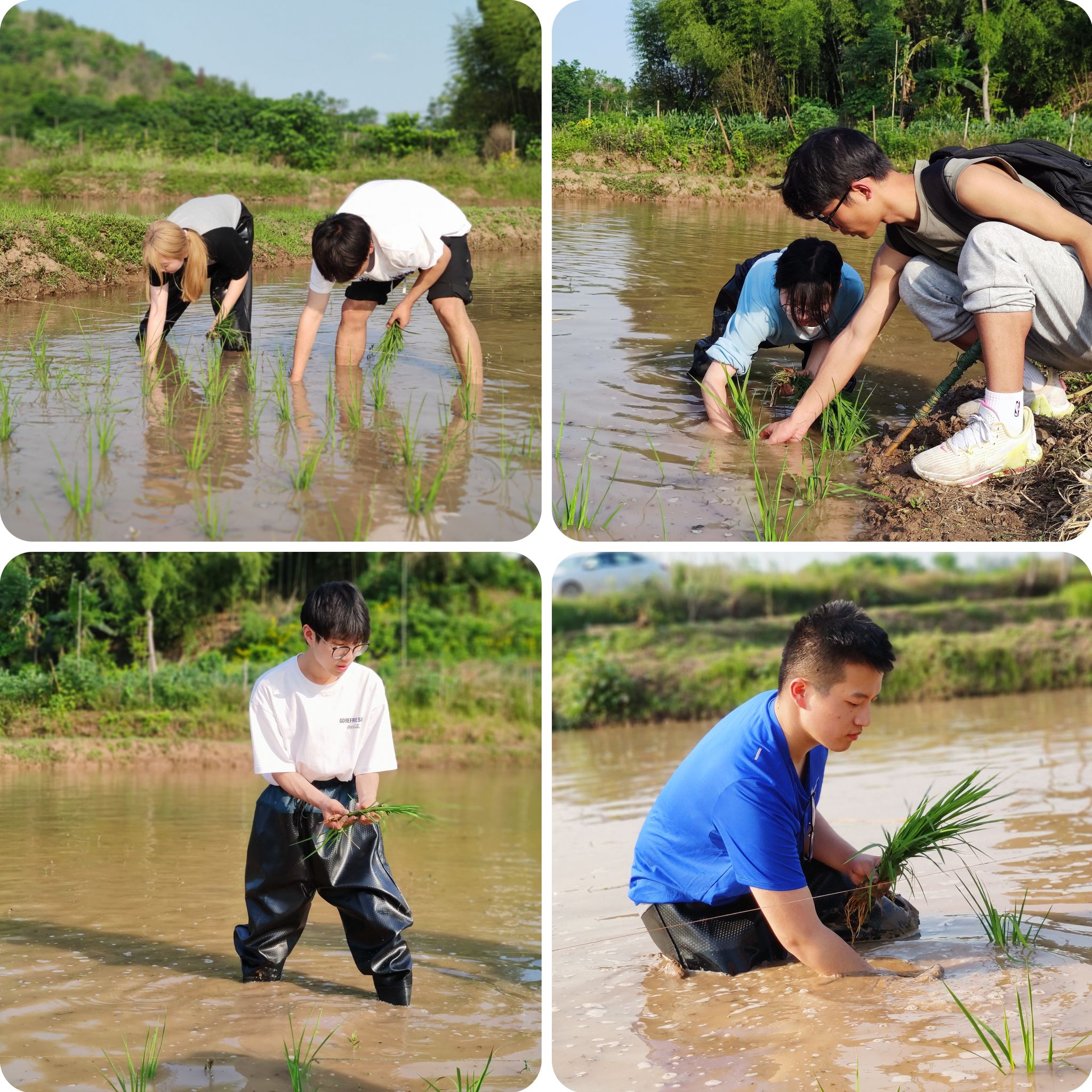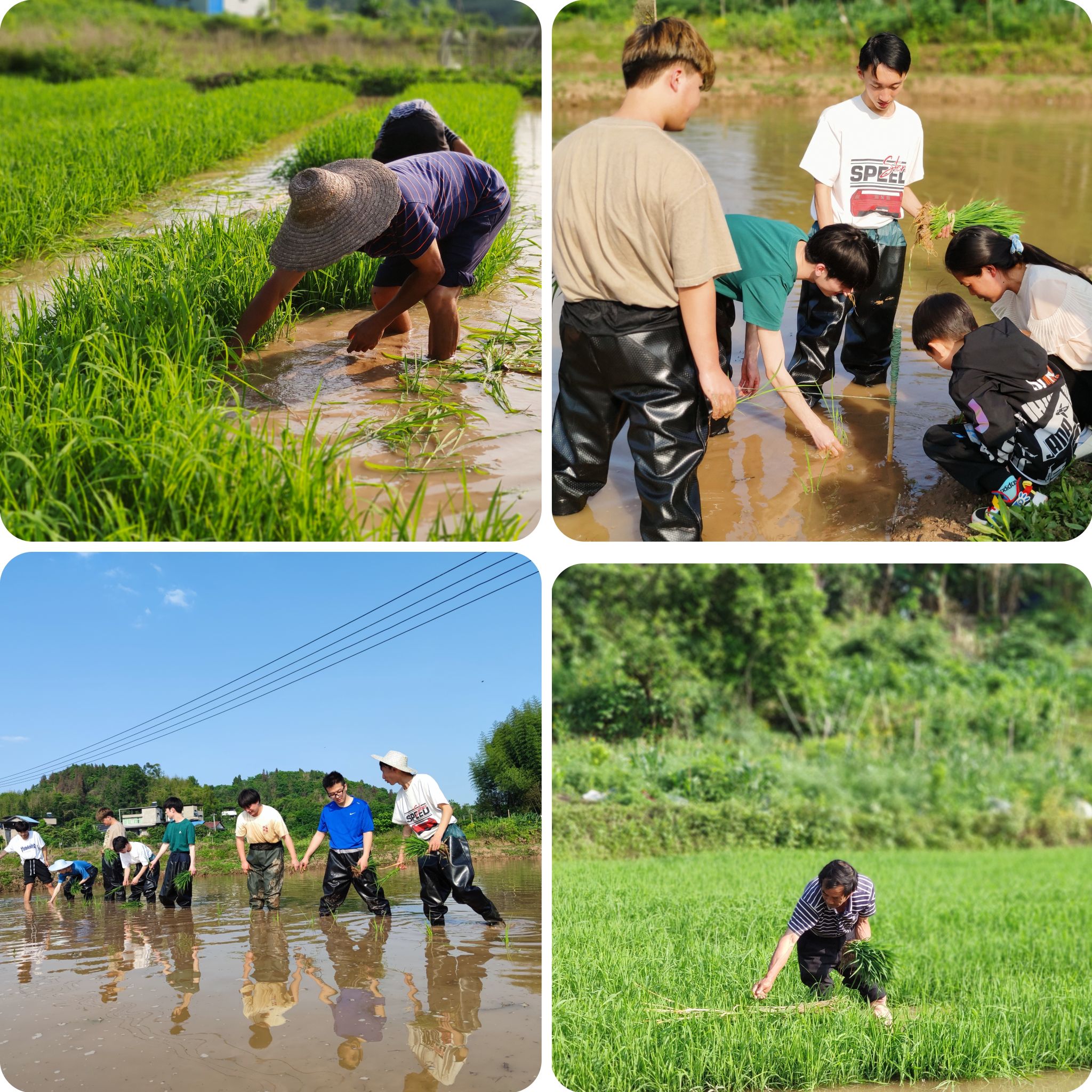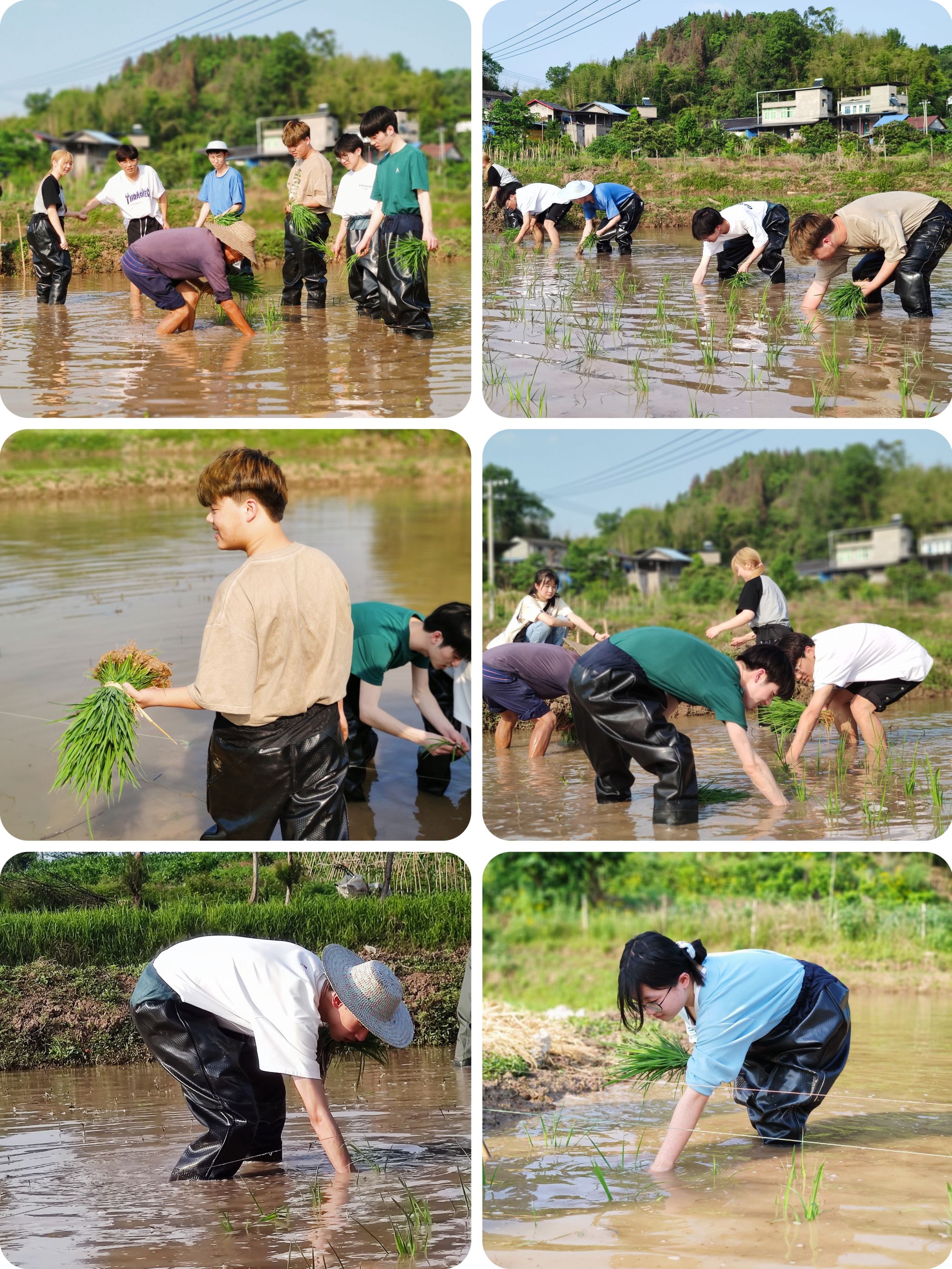 禾苗青青,稻田插秧正当时。四月的和风中书院师生整装待发,在基地负责人刘芸老师的带领下开启稻田插秧季。活动过程中,插秧小分队团结一心、分工协作,扯秧苗、运秧苗、栽秧苗……同学们一步步推进,在手脑并用的稻田实践中熟练掌握插秧技巧,用辛勤的汗水为大地焕新绿意,每个人都满头大汗,但乐在其中。来自2021级梅若书院、智能工程学院的刘璐同学由衷的感慨到:“就像刘老师所说,插秧虽是体力活,但也需掌握‘后退’技巧。以后退的方式插秧不仅能看清楚秧苗的间距和整齐度,还能防止对秧苗造成伤害。反观我们自身亦是如此,在面对困境时要学会看透‘退与进’,不能只埋头苦干而忘了抬头思考。”