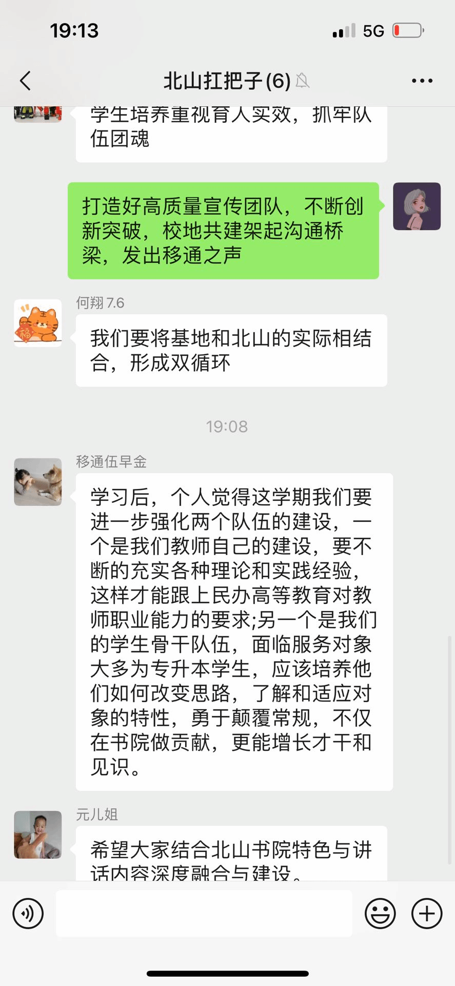 汇江书院 会上杨成老师提到“是对教育工作的热爱和岗位的珍惜,让我们对完满工作真心付出,同时也要结合当下疫情常态化情况,关注学生的个性化成长”。彭聪老师分享说:“完满教育的极致化发展就是我们引导学生不断蜕变,成为更好的自己的过程,而在当下专升本同学较多的情况下,更是要结合他们的需求开展工作。”钱玲仪老师分享说“完满教育是对学生能力、素质、品格的教育,不是为了注满一桶水,而是要引导学生点燃属于自己的一团火,要引导和启发他们从点滴成长”。 在老师们各自分享结束后,三位老师还结合讲话精神就新学期的工作要求、工作思路、方法转变、创新点等进行了讨论。三位老师表示会一同携手,在集团、学校、书院的领导下,高效高质地开展新学期工作,将会议精神内化于心,外化于形,不断学习,深化进步!