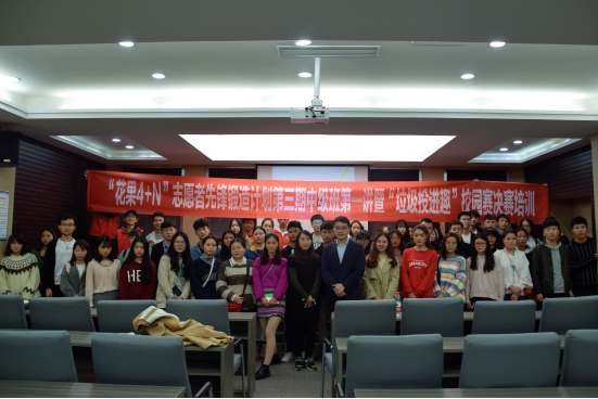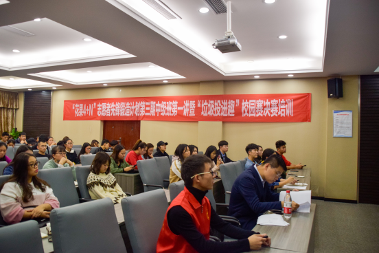 2018年10月24日晚上19点,“花果4+N”志愿者先锋锻造计划第三期中级班第一讲暨“‘垃圾投进趣’全国青年公益实践大赛”决赛培训会于行政楼A601举行。此次活动邀请到了重庆市江北幸福加社会工作服务中心主任、我校志愿服务顾问李麒麟老师担任本次培训会主讲,为花果培训计划中级班的学员们讲解并培训有关于项目策划,项目包装,项目实施等内容,并以正在我校激烈开展的“垃圾投进趣”比赛为实例,为大家进行赛前培训。