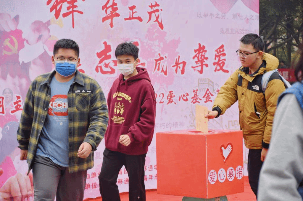 雷锋精神,人人可学;奉献爱心,处处可为。为传承和弘扬雷锋精神,特别发起2022年爱心基金募捐活动。为更好的了解我校爱心基金,合川校区党办杨涛老师和綦江校区团委负责人蔡星宇老师向大家宣读了《重庆移通学院爱心基金管理条例》,并指出募捐资金用于我校困难师生,基金具体使用及管理也公正透明接受大众监督。344个班团募捐22702.8元现金,将凝聚全校师生心意的捐款放入募捐箱中,这不止是单单的募捐,更充盈着一份份爱心和暖意。