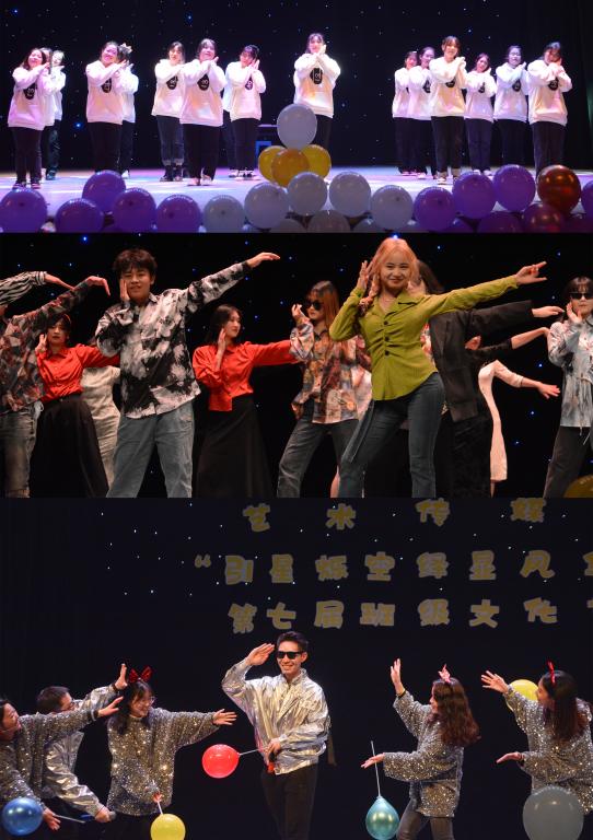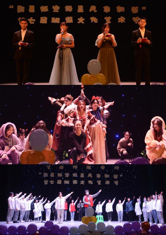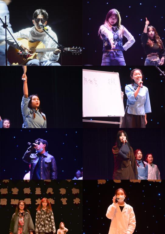 首先登场的是2021级数字媒体艺术3班《皇家表演》串烧节目,以吉他弹唱开场,而后异彩纷呈的舞蹈接踵而至,展现出同学们的多才多艺。2021级广播电视编导4班《新白雪公主》舞台剧,打乱正常故事走向,反向思维,新颖有趣,为现场制造欢乐气氛,喜剧效果极佳。广播电视编导8班的《昨日青空》情景剧,将大学生活一幕幕呈现出来,将稚嫩的新生到成长后的蜕变,展现的淋漓尽致。数字媒体艺术9班《青年·觉醒》舞台剧与“巴黎和会外交失败事件”进行联动,慷慨激昂的表现力点燃了同学们内心的爱国热情。各参赛班级都在此次表演中都拿出了“看家本领”,节目内容丰富、形式多样、激情四射,覆盖了歌曲、舞蹈、朗诵、小品等表演形式,彰显了同学们的青春与活力。