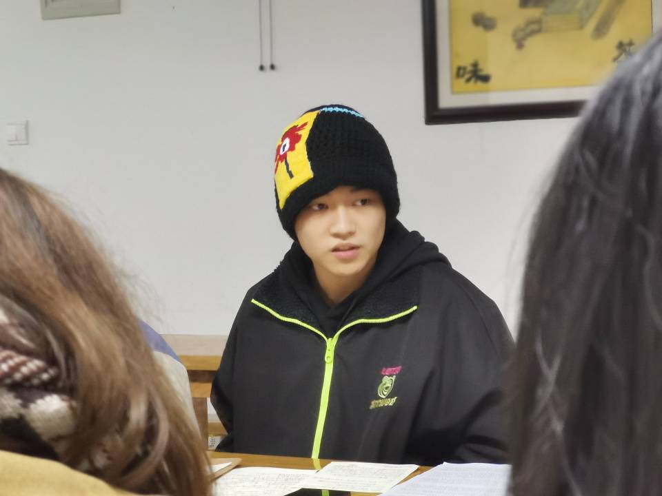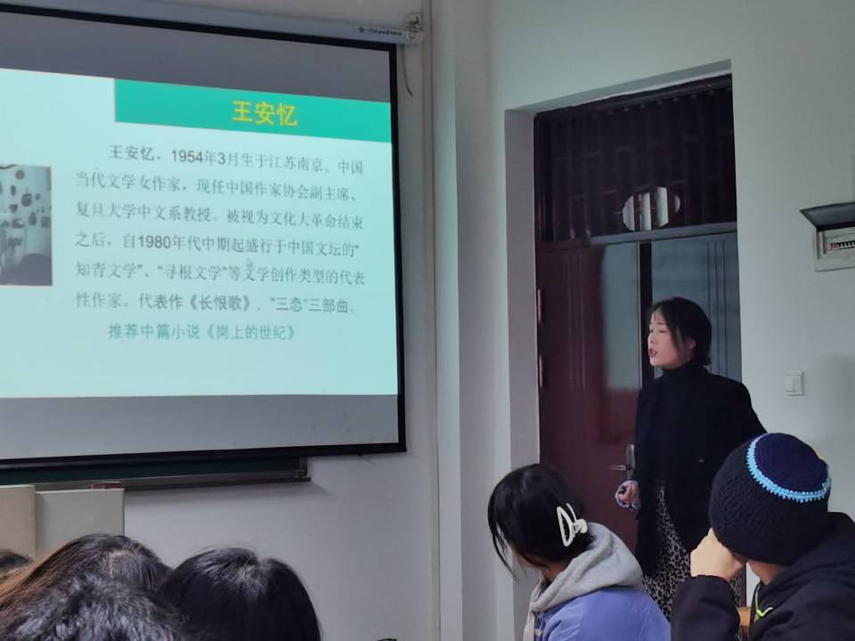 吴老师的课堂在同学们的故事谈论中徐徐展开,针对近期热点新闻事件“职校女子封校期间厕所产子”一事,同学们展开热烈讨论,训练从现实生活中提炼小说素材的能力。老师借一个新闻讲述人物塑造的重要性,并以毕飞宇的《玉秀》严歌苓的《雌性的草地》王安忆的《小城之恋》和《岗上的世纪》为例,这些故事里面的女主人公所面临的困境几乎和上面这个新闻如出一辙。老师小结道:当我们在塑造一个人物命运的时候,不仅仅讲述的是一个个体,更要去挖掘这个人物背后所承载的时代负重与环境枷锁。