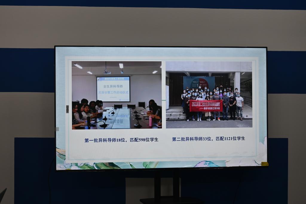 通信与信息工程学院异科导师专项工作负责人费莉老师,从学院异科导师活动开展情况重点分享,活动记录,摸排学生情况,多方面了解学生,勤沟通根据学生实际需要开展相关活动,切实帮助学生所需,发挥异科导师个人“专项”,多元化指导提升学生专业知识以外的教育。