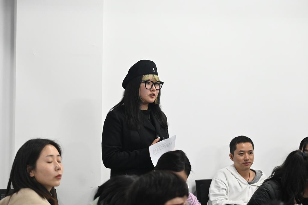 艺术传媒学院异科导师专项工作负责人毛国婷老师,分享了作为异科导师负责人和辅导员对待异科导师不同的感受和认识。作为异科导师负责人用各具特色、激烈碰撞,多学科融合;作为辅导员异科导师们是一种温暖而坚韧的力量。在实际的一些学生事务工作中,异科导师角色可以和辅导员角色相辅相成,帮助同学拓展眼界,赋予新的能量。