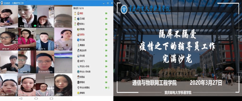 2020年3月27日,开展了以“隔屏不隔爱,疫情之下的辅导员工作”为主题的完满沙龙。延期开学,如期开课,辅导员如何做好学生工作?沙龙提到做好“1”“2”“3”“4”“5”工作,共抗疫情显担当,爱国力行育新人。“1”个中心,以学生为中心;“2”个基本动作,“日报告”与“零报告”;“3”个关注,关注网络舆情,关注重点学生,关注思想教育;“4”个必报,接触疑似或确诊要汇报,身体异常要汇报,行动轨迹要汇报,就业实习要汇报;“5”个牢记,尖移通打卡要牢记,按时网课要牢记,无通知不返校要牢记,识别诈骗传销要牢记,做好安全防护要牢记。副院长何燕老师何燕老师强调,凡谋之道,周密为宝,疫情期间辅导员开展工作应能量与质量并重,尺度与温度并存,务实与技巧并行,让学生宅家有方,居家有益。
