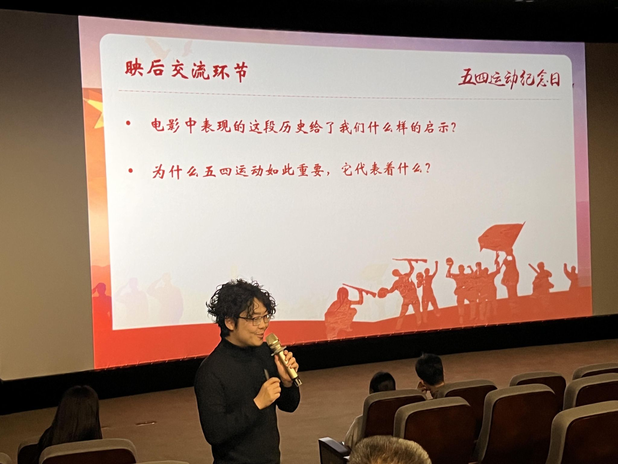 赓续红色血脉,汲取奋进力量。为进一步弘扬红色革命精神,巩固拓展党史学习教育成果,深入学习二十大精神,积极传播正能量,激发青年党员爱国爱岗敬业精神,强化国家责任意识,提升青年教师的向心力、凝聚力、战斗力,4月26日下午,电影评论中心和数字经济与信息管理学院教师党支部组织开展了“五四”青年主题电影放映与鉴赏评论活动。本次活动在六度空间八又二分之一放映厅举行,由电影评论中心黄俊霖老师主持,数字经济与信息管理学院教师党支部全体党员、入党积极分子、发展对象共同参与。