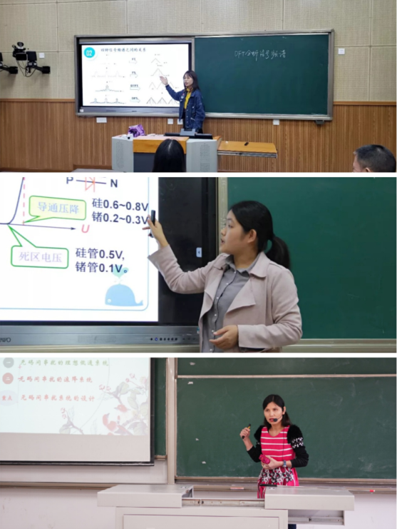 优秀教师代表谭丽蕊、费莉、赵瑞玉以及胡蓉等老师开展了示范课。谭老师讲课过程中使用了仿真软件,让知识更直观,学生对知识也更有兴趣。费老师授课思路非常清晰,语速把控很好,同时一手漂亮的粉笔字带给学生美的享受。赵老师通PPT的动态效果让抽象的知识“活”起来了,其课程生动形象,学生学习积极性调动非常好。胡老师教学内容剖析深刻,重点难点把握得当,教学过程设计合理,师生互动效果很好。