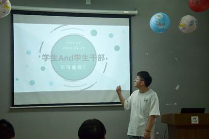 工作与学业能否兼得?胡余轩学长给同学们带来他的见解,效率是两者兼得的关键,而两者的关系则呈现在工作是学习的外在表现,更好的学习是为了得到更好的工作。与同学的良性竞争学习,以自己的顺序完成学业,与干部干事们协调工作,合理的安排等于节约时间,同样能够在工作和学业中应对自如,最后学长以自己的经历告诉同学们不要盲目从众,选择合适的方法,才能事半功倍。