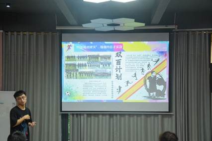 李特灵学长谈了一些工作中的问题,遵守学生组织中的一些章程、规则是基础。团队中需要领导力,谈业务需要沟通能力,格局也要有一定高度,懂得这些,与别人打交道时,他们才会认可你。在活动安排中,最主要是要有一个方向性,向同学们传递出竞技体育的价值观,赋予每名主席、干部、干事责任,去引导学生们积极参与体育锻炼,这才是举办活动的意义。肖峰学长介绍从自己懵懂大一到略有经验的大三,音乐的剪辑与制作,宣传视频的剪辑,服装的挑选,灯光的变化,全都是一人制作承担,再到后来的编舞排舞,严格把关,尽管过程艰辛,但想到在舞台上发光发热,一切也是值得的。