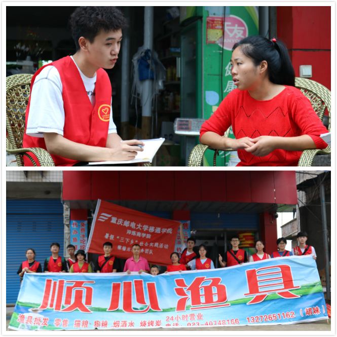 这小雨是天空的释放,雨是上天赐给我们的一个礼物,也是万顺镇给我们的一个礼物。志愿者们在实践的路途中遇到了顺心渔具的老板娘­——胡姐,她非常热情地邀请志愿者到店内做客。在与她的交流中,志愿者们了解到顺心渔具的基本经营情况以及她的致富愿景:通过开办补习班让镇上更多的人学习捕鱼方法,同时利用现代网络打开当地渔业的知名度。在志愿者们的帮助下,充分利用短视频平台创新渔具店的宣传方式,完成了关于饵料、鱼竿、各种鱼虾诱捕剂的拍摄介绍。简单平凡的家庭,有着不平凡的梦想,志愿者们被胡姐深深的打动,同时他们与胡姐的故事也未完待续。