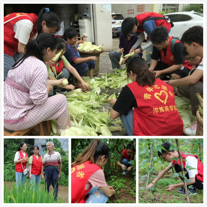 鱼鳞似的白云渐渐散去,天幕的蓝色也淡了一些,只有那无尽暖阳还在缓缓的赶来,采访后稼穑志愿服务团队辗转步入田园间,来到了热心村民蔡爷爷家。潮湿的空气中弥漫着缕缕稻花香,远处的绿色沁人心脾,随着蔡爷爷的脚步,志愿者们来到了田边,蔡爷爷细心地讲解农作物从播种到收获的过程,志愿者们也自发的为蔡爷爷除去地里的杂草,一分耕耘一分收获,不到农村,不知稼穑艰难。
