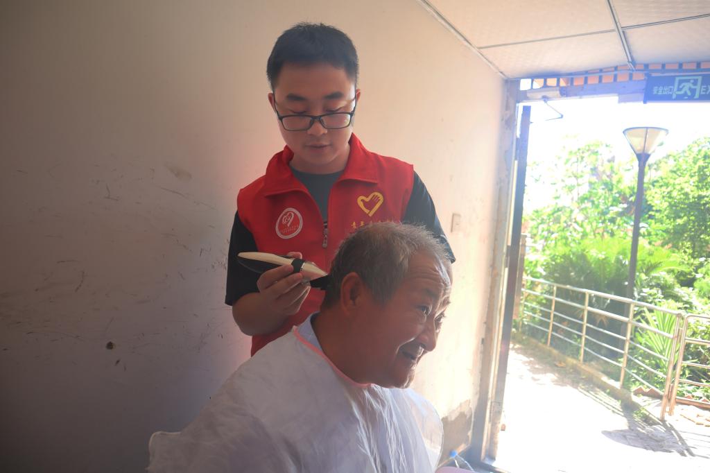 敬老是传统的美德。“知书拾穗”教育关爱服务团通过探访的方式深入了解社区老龄群体情况,联合“益剪唤心”学生志愿团队为沙南社区的年长者提供公益剪发志愿服务活动。同时,老龄群体作为电信诈骗的重灾区,“知书拾穗”的团队成员走村入户,确保电信诈骗宣讲全覆盖、无死角,提升沙南社区老年群体防诈意识。