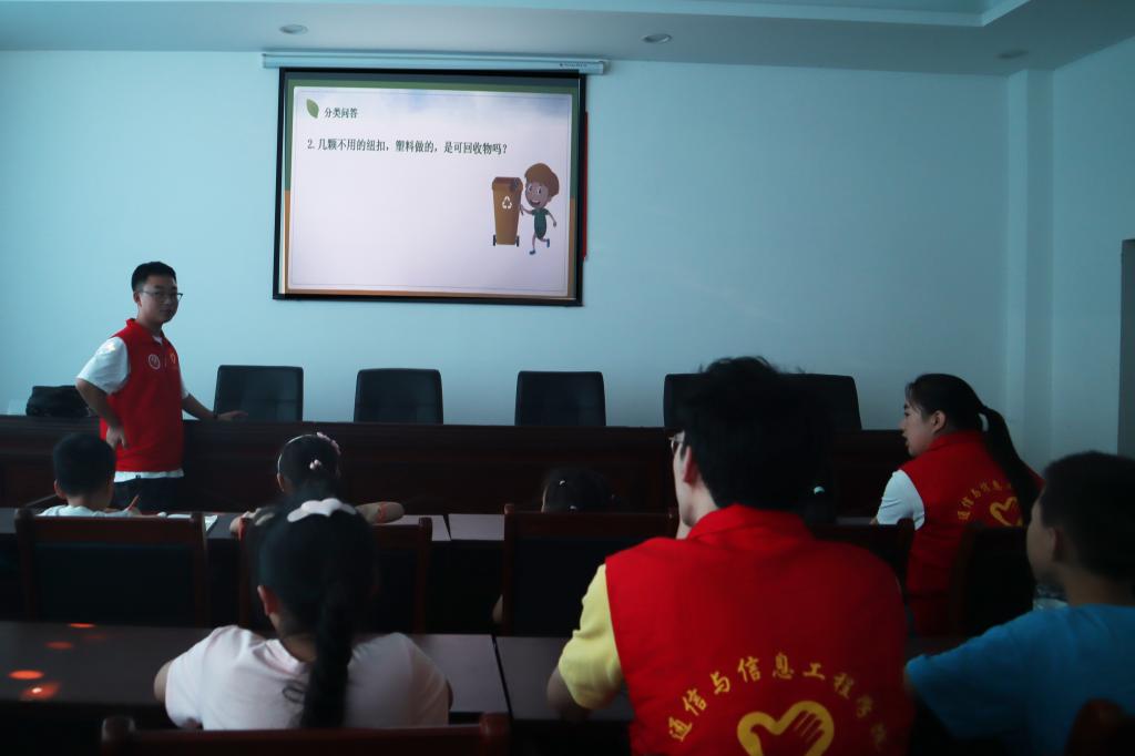 绿色是永恒的颜色。为响应我国垃圾分类、垃圾下楼的号召,将“绿水青山就是金山银山”的理念牢固树立在沙南青禾的心中,“知书拾穗”教育关爱服务团在盐井街道沙南社区,以生活中存在的低碳环保行为导入,由浅入深过渡到环保知识为沙南青禾开设环保知识趣味课堂。