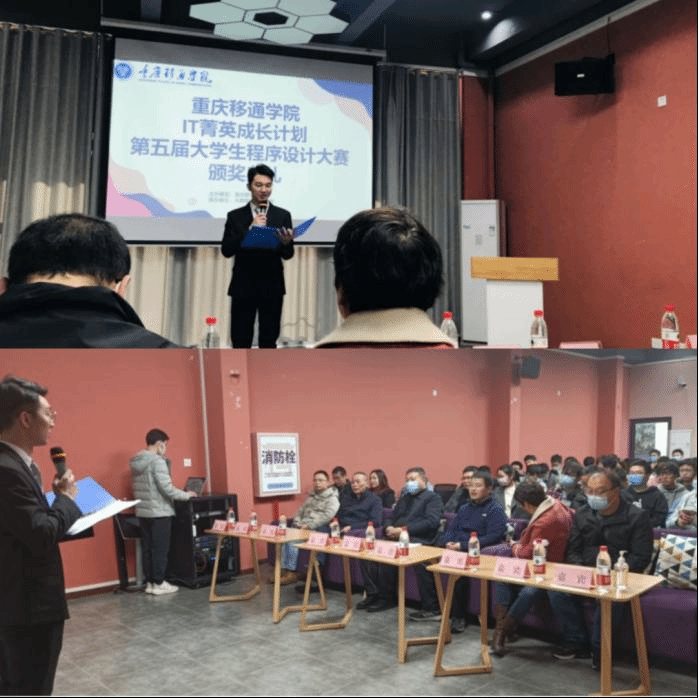 为培养大学生的创新精神和实践能力,让学生深入了解编程,激发对编程的热情,发掘学生创新意识,鼓励学生自主研究、自主创新,体会编程思想,大数据与软件学院于11月3日承办了IT菁英菁英成长计划之第五届大学生程序设计大赛。12月1日下午,重庆移通学院“IT菁英成长计划之第五届程序设计大赛”颁奖典礼在别都书院四维空间顺利举行,本次颁奖典礼邀请到大数据与软件学院闫会峰副院长、数字经济与信息管理学院潘显兵院长、大数据与软件学院王焱副院长、大数据与软件学院向碧群副院长、通信与信息工程学院唐林建副院长、远景学院强杨副院长、大数据与软件学院软件教研室邓秋菊主任、大数据与软件学院数字媒体技术教研室钟怡主任、大数据与软件学院计算机科学与技术教研室张玲主任作为嘉宾。