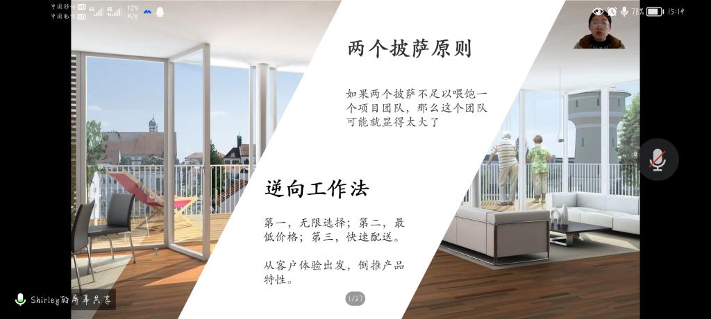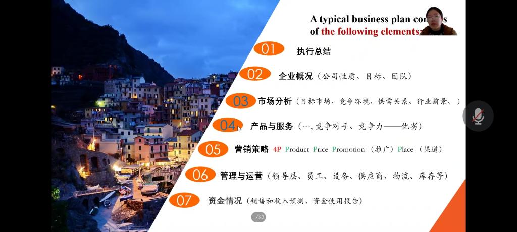 紧接着,帅易琼老师提出了贝佐斯的“两个披萨原则”与“逆向工作法”,向同学们详细地介绍了贝佐斯的商业思想,即通过产品倒推出用户的需求。一个典型的商业计划应该包含执行总结、企业概况、市场分析、产品与服务、营销策略、管理与运营、资金情况等七个方面的内容。