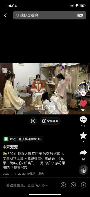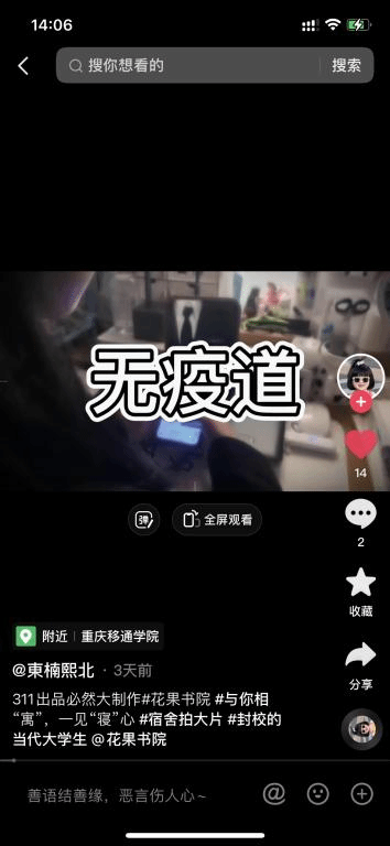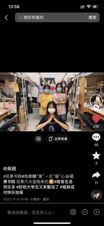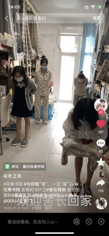 为推动校园精神文明建设,以“家文化”为基点,丰富疫情防控期间同学们的生活,活跃寝室氛围、舒缓因疫情带来的焦虑情绪,增强宿舍的凝聚力。2022年11月,花果书院开展“与你相’寓’,一见’寝’心”视频活动,通过拍摄创意短视频,为移通学子提供一个表达自我的平台,展现校园风采,在疫情期间激励广大学子充满积极动力,共同抗击疫情。