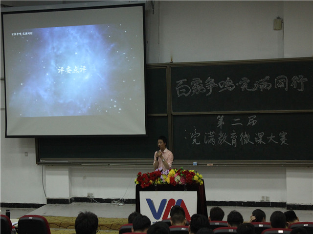十二组选手结束授课后,曾获全国微课大赛一等奖的卢镜囡老师,上台与大家分享她对于微课的理解与看法。在她看来微课就应该选取一个问题研讨,在有限时间内对这一个问题层层剖析,由小见大,新颖的题目与授课方式更有利于微课课题的表达。随后,智能工程学院社团活动版块的负责老师刘桃就各参赛小组对完满教育内容理解方面做了点评。鼓励参赛选手要充分解读学校文件、了解同学们的需求。