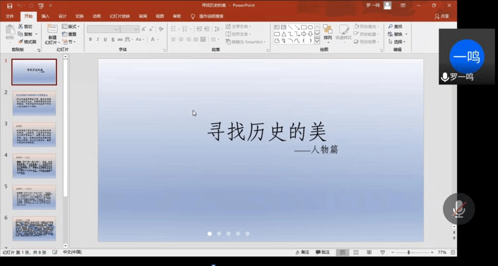接着,罗一鸣同学以“历史中的人物之美”为切入点进行了分享。他给参会的所有同学介绍了何为纵横家,同时分享了几个出名的纵横家。最后他谈了自己对于纵横的感悟:在战国七雄的时期,纵横家的活跃不断使中国由分到合,在这期间的智慧,闪耀着不可磨灭的光芒,让后人钦佩。而这些智慧还可以运用到现在的国际外交中,得以了解这样的智慧时期,是后人的幸运。