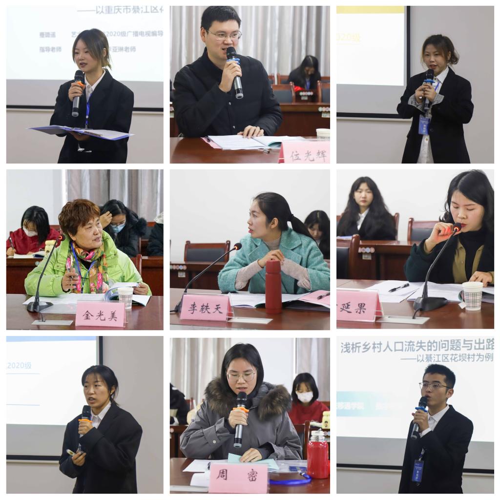 14点10分,第二场会议正式开始。淬炼商学院2020级杨燕分析了“乡村振兴之下村民迁居城市的意愿”;数字经济与信息管理学院2020级杨觐榕和洪心怡分别就“‘撤村建居’农民融入城市现状与挑战”、“人口老龄化倒置现象”进行探讨。通识教学部徐亚兰老师、单旭燕老师、地域文化与城市发展研究院彭伟老师、李凤勤老师担任本场会议的点评嘉宾。其中,徐亚兰老师提出了文章题目范围避免过大,需要具体化的问题。