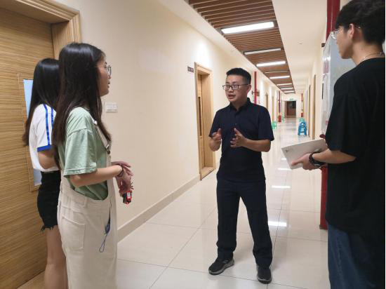 书院是学生生活的第一场所、学习的第二课堂。为深入了解远景学子的书院活动室使用情况,增强寝室纪律意识,引导学生重视寝室安全、加强寝室文明建设,6月15日21时,远景学院新任学工副院长李军老师在各年级辅导员、综合办曹嘉彧老师以及学院学生干部的陪同下,走进远景楼,了解远景书院功能室的建设与使用情况,同时也走进学生寝室了解学生的寝室生活,关注学生的寝室安全。