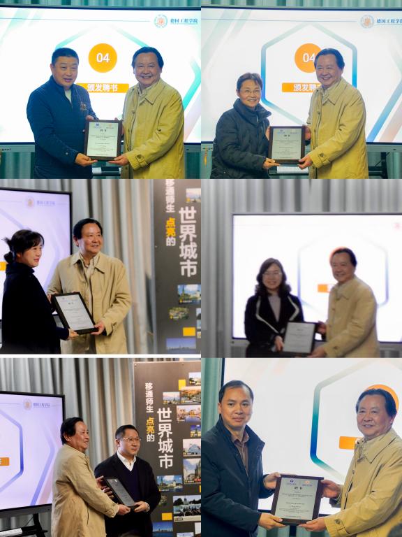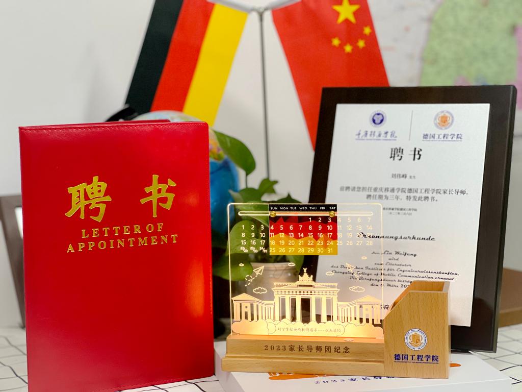 来到本次活动的高潮环节,重庆移通学院校长张德民为德国工程学院家长导师团颁发聘书及纪念品,并恭喜祝贺各位家长导师加入到重庆移通学院德国工程学院大家庭。