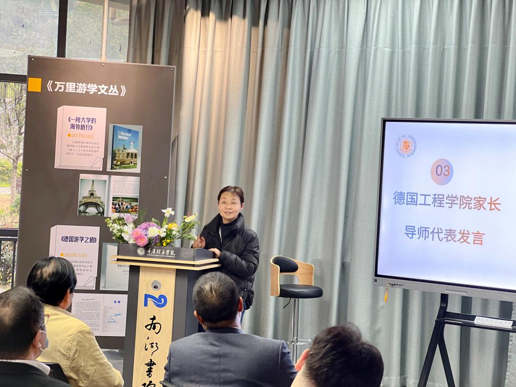家长导师石平老师结合自身的留德经历,为参会家长生动而详尽地介绍了赴德留学的意义。石老师就留学之路上会面临的来自生活和学习的各种挑战提出有效的应对策略,如引导同学们要学会融入,学会改变,转变自身学习方法方式,自律自觉自主等。石老师也祝愿同学们能够在德国工程学院学有所成并勇敢踏出国门,成为未来国之栋梁。