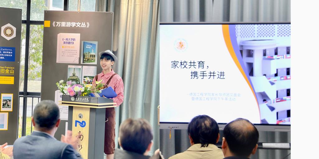活动伊始,身着德国巴伐利亚传统民族服装的主持人带领现场来宾一起观看了德工学子的成长纪录片,同学们在短片里全方位地向家长讲述自己在德国工程学院的学习与生活,他们都很庆幸能生活在美丽温暖的南湖书院,很感恩能有机会学习在德国工程学院。同学们纷纷提到,能够在精致高效的小班教学模式中打下更加坚实的专业知识基础,同时也能体验到多彩的校园活动,这是一件非常幸福的事情。视频中,同学们向一直陪伴自己成长的父母、老师表达了无限的感激之情。