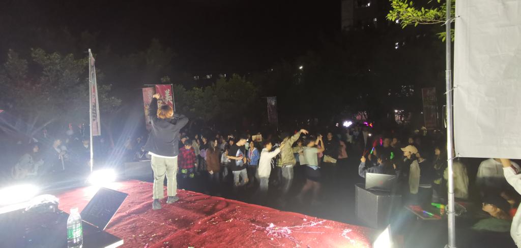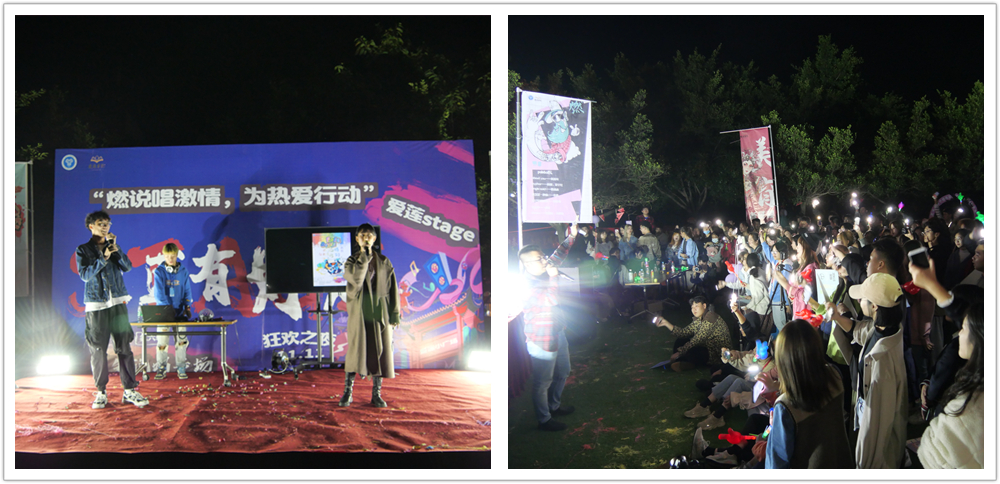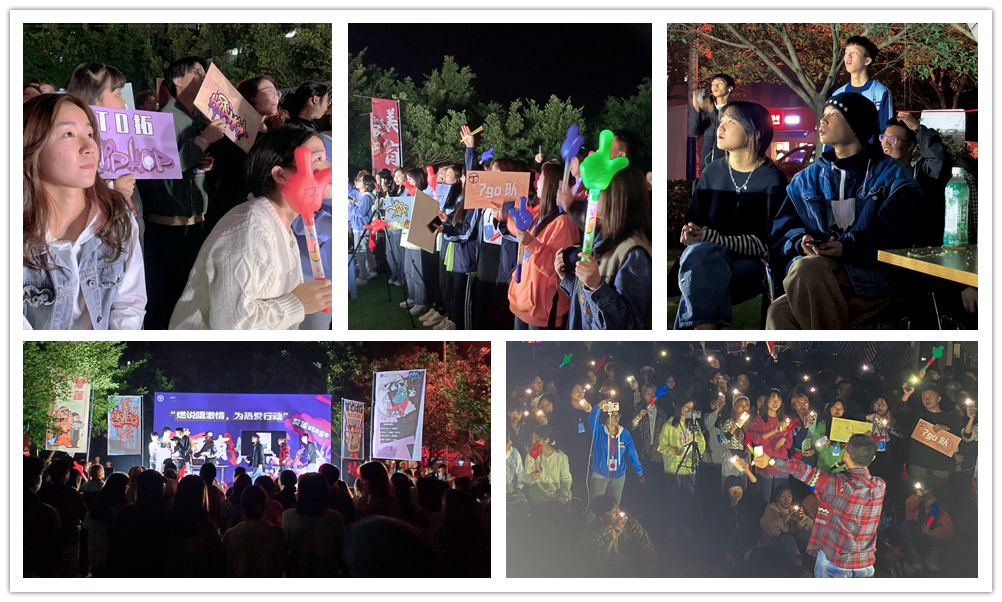 以往老师在同学们心中都是严肃的一面,而本次音乐会台上的说唱将老师real的一面尽情展现,本次音乐会的特别之处在于,老师各自带领一支队伍进行激烈Battle,当老师们为各自的队伍摇旗呐喊,现场观众的阵阵欢呼声和呐喊声充斥全场。文璐祺老师和姜雪丰老师带来的旋律嘻哈歌曲《感谢你曾经来过》拨动着每位同学的心弦,为7Go队拿下了关键一票。随后,金鑫老师跳下舞台以一首《思念是一种病》与同学们激情互动,为Paiboi队扳回一局,闪光灯的舞动与呐喊声的聚集将整个爱莲广场“点燃”,书院家文化的氛围也在此刻体现的淋漓尽致,在书院里,师生间不仅可以成为学习成长的共同体,也可以是同台竞技的共同体。