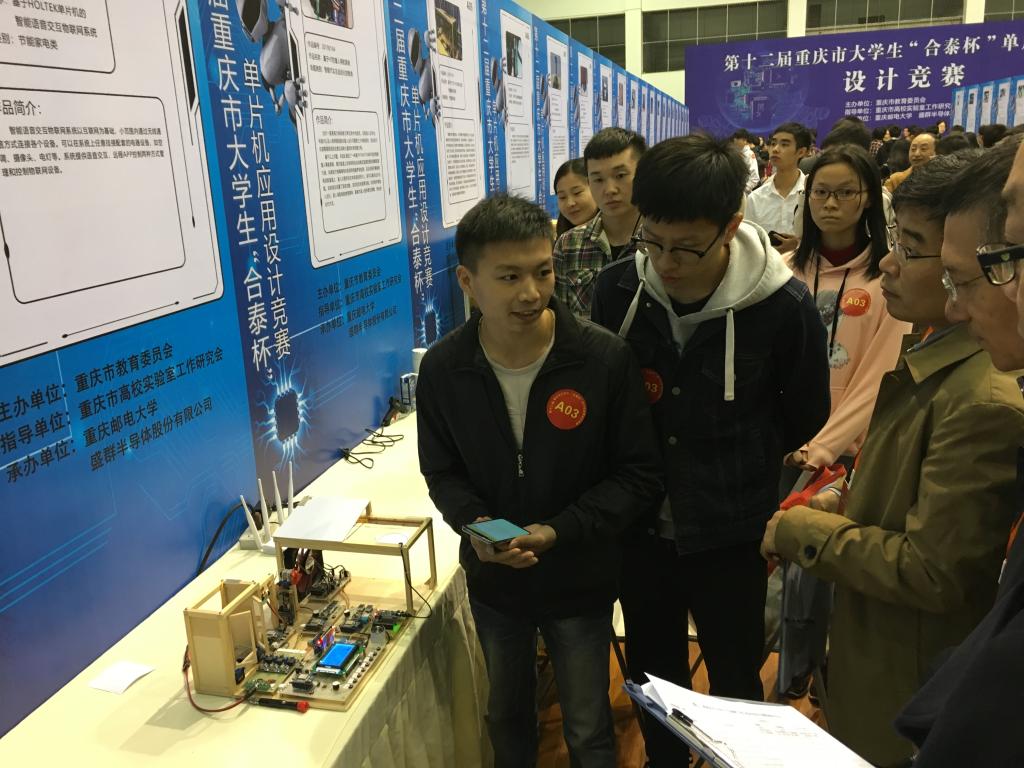 11月2日,通信与物联网工程学院席兵、赖小龙、郑秋菊三位老师带领我校5支队伍参加第十二届重庆市大学生“合泰杯”单片机应用设计竞赛。在“合泰杯”单片机应用设计竞赛中,我校通信与物联网工程学院赖小龙老师指导的黄万林、陈霞、李柏泽、田朝英组建的团队以“基于HOLTEK单片机的智能语音交互物联网系统”作品获得一等奖,由冯文果、赖小龙老师指导的吴成平、冉雪玲组建的团队以“智能拐杖”设计和由冯文果、周忠伦老师指导的杨佳、李治、喻杰组建的团队以“智能晾衣架”设计获得三等奖。此次比赛我校有历史性突破,除学生们斩获一等奖、三等奖外,我校获得优秀组织工作奖,于此同时,通信与物联网工程学院通信专业基础教研室主任席兵获得优秀组织工作者。