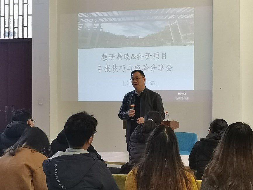 会议伊始,段教授分享了他在教科研课项目申报方面取得的成就,以教科研入门的基础条件为切入点,为大家详细阐述了各种类别的教科研项目申报流程,指出了申报材料的要点及注意事项。