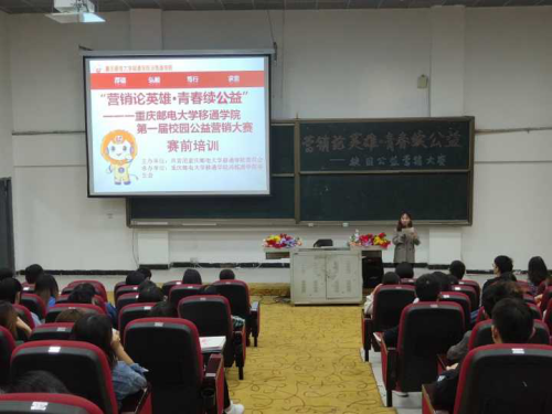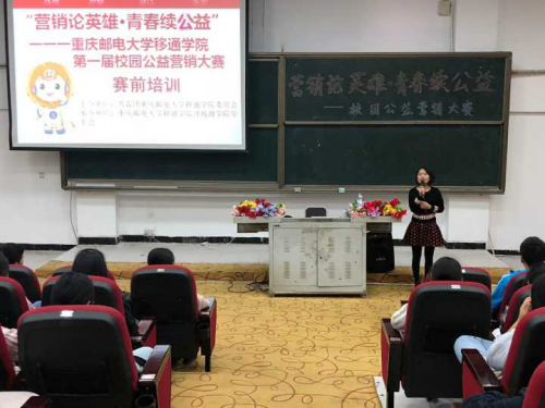 2018年10月10日下午4点面向全校各级学生在3202召开了"营销论英雄·青春续公益"校园公益营销大赛赛前培训会,我们有幸邀请到淬炼商学院副院长谢银平老师、社团活动板块指导老师曹瑞峰老师、志愿服务板块指导老师熊斌老师和马莉老师出席此次的培训会,同时我们还邀请到火星实践团金牌培训师白超龙老师为我们带来精彩的营销培训。