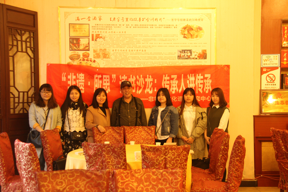 4月16日上午,非物质文化遗产研究中心李凤勤老师携学生研究员来到合川文峰古街的“满一堂”,就合川肉片及其民间传承人背后的故事等对张西良老师进行了访谈。