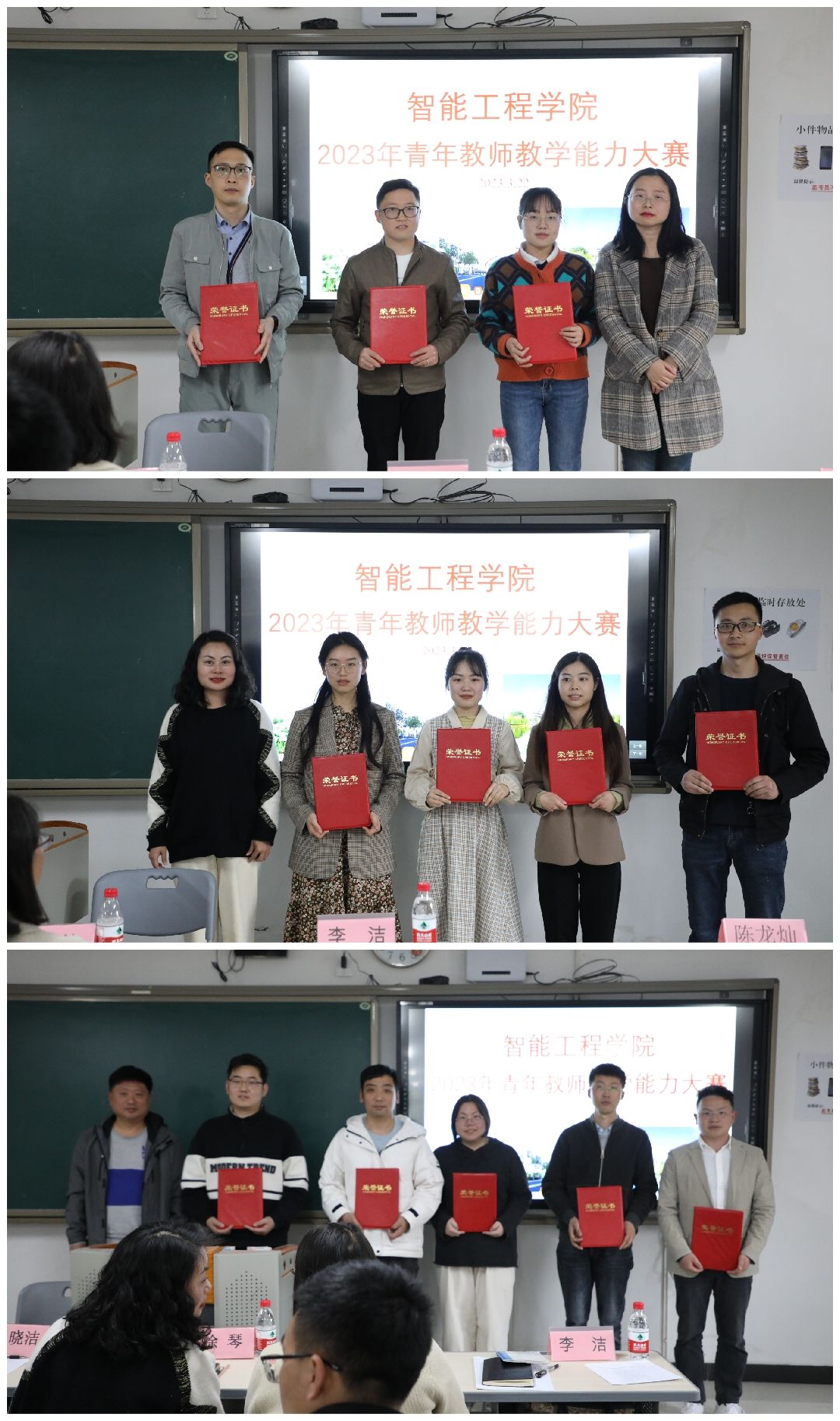 比赛现场精彩纷呈,最后评选出蒋冬政、何聪、朱凯欣、张甲强4位教师代表智能工程学院参加学校的青年教师教学竞赛。