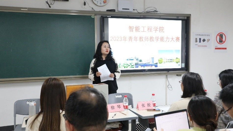 为全面提升青年教师教学质量,搭建教师教学交流平台,促进教师教学方法的改进,智能工程学院于3月22日下午在竹逸A201举行2023年青年教师教学竞赛初赛,智能工程学院13名教师参赛,学院全体教师观赛。大数据与计算机科学学院专业负责人徐琴教授,智能工程学院副院长李洁以及学院各教研室主任担任评委。