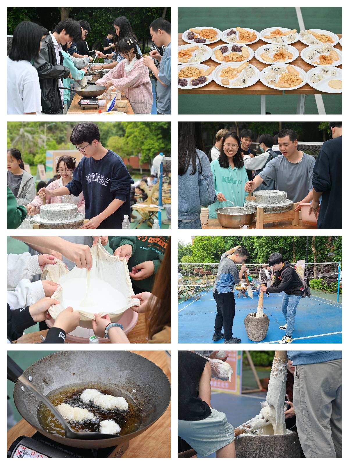 活动现场还设置了手工糍粑与石磨汤圆体验区。同学们撸起袖子、相互配合,在木锤的起起落落中,一粒粒晶莹剔透的糯米历经千百次捶打、成型与油炸,成为了同学们口中很“哇塞”的美食;石磨汤圆则是通过传统石磨工具将糯米磨制成糯米浆,同学们按照沉淀、沥干、成型、蒸煮等制作工序步步推进,最终辅以醪糟、桂花等材料提升汤圆风味与口感,一杯杯香气扑鼻、口感甜软的汤圆瞬间俘获了同学们的芳心。除此之外,活动现在还将米糕、米花糖、米饼等米制品进行现场展示与科普,同学们在遇“稻”美好食光的同时,也深刻感受到稻谷文化的丰富多彩与灿烂文明