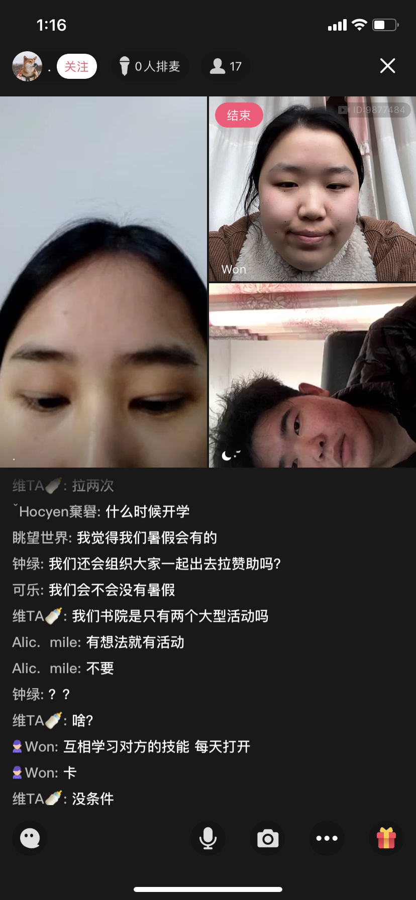 资源拓展部的赵晶晶首先登场,她给小伙伴们带来了一场“网课学习行为大赏”,在拉近与学弟学妹彼此之间的情感距离的同时,也鼓励大家在家也要对自己每天的生活做好规划,以此来适应新学期的学习生活和工作。紧接着活动实践部的杨正灏则通过抖音直播的方式跟大家见了面,他以“新起点·新目标”为题和小伙伴们分享了自己的假期生活,也期望学弟学妹们把握“宅家”的时光,为新学期做好准备。新奇的线上朋辈课堂形式在这段特殊时光中温暖着我们彼此,也教会了我们分享和关怀。