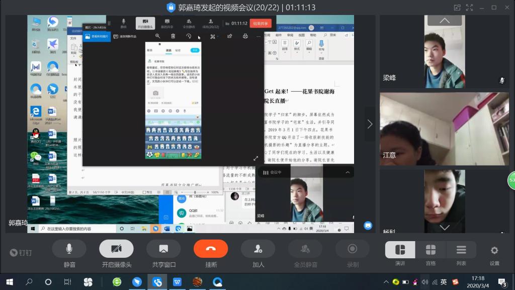 在全民抗击疫情的这段时间里,我们的生活发生了巨变,部分同学们的心理也发生了很多变化。疫情不但威胁着我们的身体健康,也使我们的心理处于焦虑之中。在这样的背景下,花果书院资源拓展部以及活动实践部的部长们决定利用便捷的直播平台给学弟学妹们带来一场别开生面的朋辈共享云课堂,以此来和大家分享如何应对负性情绪、如何进行心理调适。