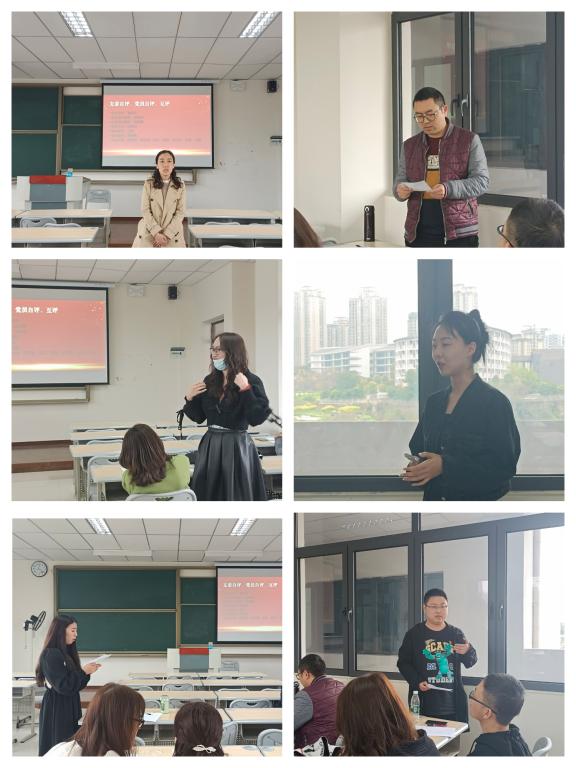 二十大精神学习后,刘贵容同志对支部全体党员教师在2022年度的努力与进步表示肯定,但也提出我们党员教师的“冲锋”精神不够,尤其是在新教师培养方面进行了严肃的自我批评。王哲同志代表支委率先开展批评与自我批评。从查摆支部在2022年度的建设情况、教研室主任的管理等方面深入剖析自己的不足,并给出2023年度的整改措施。