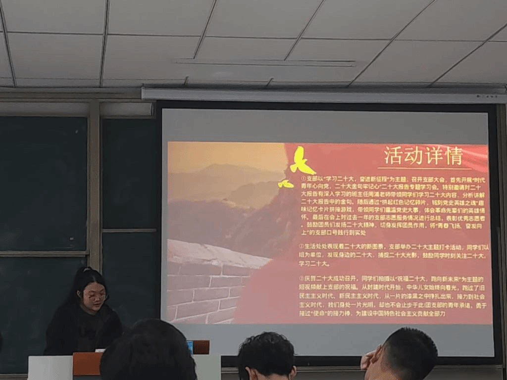 为深入学习贯彻党的二十大精神,推动党的二十大精神入脑入心、见行见效,展示移通学子学习党的二十大精神的心得体会和思想升华,激励更多同学以党的二十大精神为指引,始终胸怀“国之大者”,自信自强、守正创新、踔厉奋发、勇毅前行。马克思主义学院所属习近平新时代中国特色社会主义思想研习社于3月17日下午三点半在九教开展以“激扬青春梦,奋进新征程”主题学习分享活动。此次活动由研习社社长刘文豪同学主持,马克思主义学院唐菊相、曹席等老师参加。
