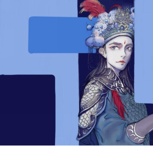 借鉴的以前看过的图片中提取的元素组合在一起的,我比较喜欢蓝色,就以蓝色为基础色,当时我想象的是一位将军。