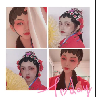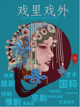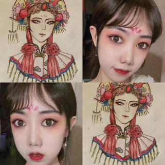 参考中国戏剧的发展和特色以及妆容,表达戏剧的优美与艺术,表现对戏剧的热爱,体现出表演者心里沉浸,戏外热忱的心境。戏里戏外,如此认真。