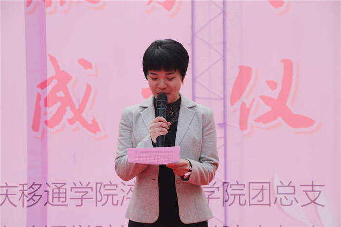 本次成立仪式邀请到合川区妇联杨锐主任上台致辞,她说道:“从上次一起携手共建“三江巾帼·美丽我家”植树节主题活动到此次受邀参与支队成立仪式,虽只半月有余,但期间对于志愿活动的交流并无中断……”多次活动的联合让两个组织默契十足,杨主任的发言也体现了她对“SHE”支队的厚望以及对下次志愿服务活动合作的期待。