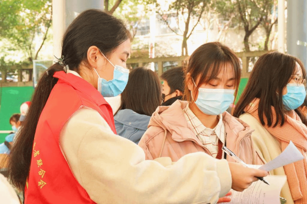 “一人一岗位,投身到防疫”志愿者们用耐心、细心、贴心的服务,践行新时代青年志愿者的责任与担当。“同学们请提前准备好健康码和身份证、有序排队等待接种”,协助秩序维护的志愿者一次又一次提醒师生接种准备及接种后注意事项。同时,志愿者也指引师生到达登记地点,协助医务人员为接种者填写协议表、测量接种人员体温。留观区志愿者在维护留观人员秩序的同时认真观察留观人员有无异常情况,在异常情况发生时第一时间上报并为师生提供相应的帮助。